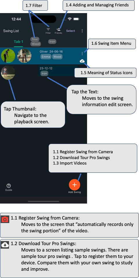 1. Swing List Screen